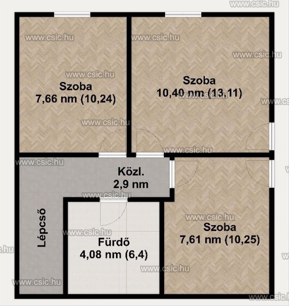 Az emeletre egy hangulatos falépcső vezet, itt található a 3 külön nyíló hálószoba és a saját ablakkal rendelkező kádas fürdőszoba.