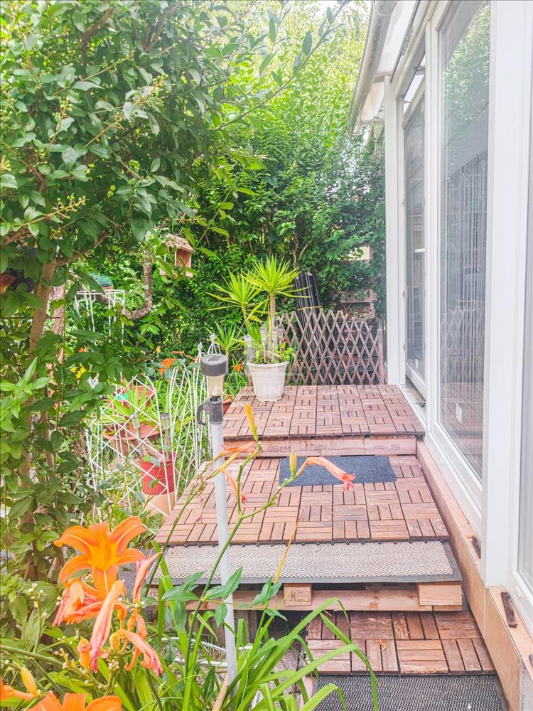 - a kert (nem a telek) mérete 263 m2,