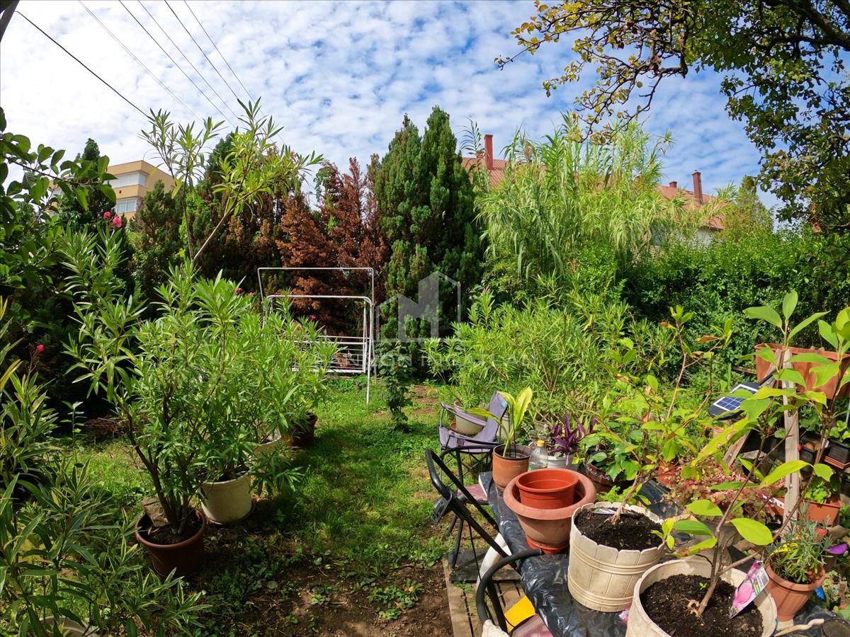 Eladó egy déli fekvésű, K-Ny-i tájolású 4+1 szobás szélső sorházrész Veszprém KERTVÁROSÁBAN!A házhoz gyönyörű, ősfás kert és nappali valamint kertkapcsolatos téliker TARTOZIK.
