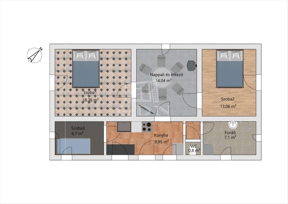 Ez a 71 nm, 4 szobás tanya egy mesés, majdnem 6000 nm telken fekszik, ahol a természet az úr – erdő veszi körbe, a tájvédelmi környezet garantálja a nyugalmat és a friss levegőt.