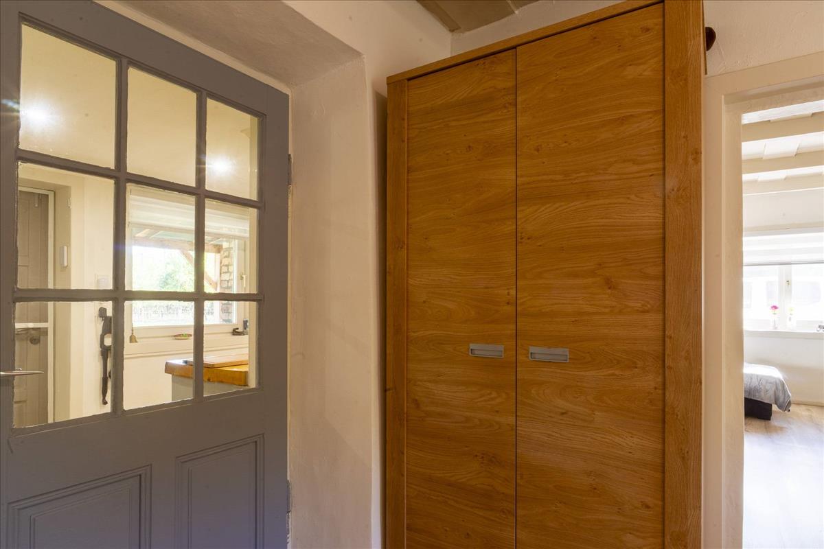 Since the owner is Dutch, everything is very nicely and practically designed. The kitchen table, the fantastic view, the simplicity of the interior, the covered terrace exude incredible calmness, peace and love. The water is provided by our own drilled well, the house is heated with 2 pellet boilers and air conditioning. Video camera alarm system installed. In the garden, there is a small paddock for horses, as well as 2 old buildings, 11 and 27 square meters, which can be renovated to provide additional space. The house is in excellent condition inside and out, it has been kept in good order, and the area is unique. It is also suitable for keeping animals and gardening.