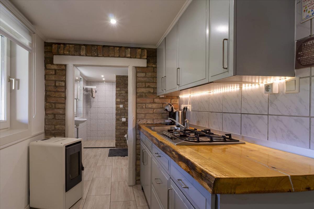 The farm is surrounded by forest and is located about 1. 5 Km from the road. It can be reached by a well-traveled road even in the rain. It has 1 living room, 2 rooms, large, equipped kitchen, bathroom, toilet, pantry. The rooms are of a very comfortable size, the house has windows all around, providing a beautiful view of the surrounding garden and forests. a pellet stove makes the living room intimate and cozy. The bathroom has a shower and toilet, and the washing machine and dryer are also located here. The design kitchen is elegantly designed, with windows, which we enter from the large terrace. The kitchen furniture with high-quality technical items is part of the purchase price. Its interior height is 2. 45M. The waste water is discharged into the digester with a flow-through system.