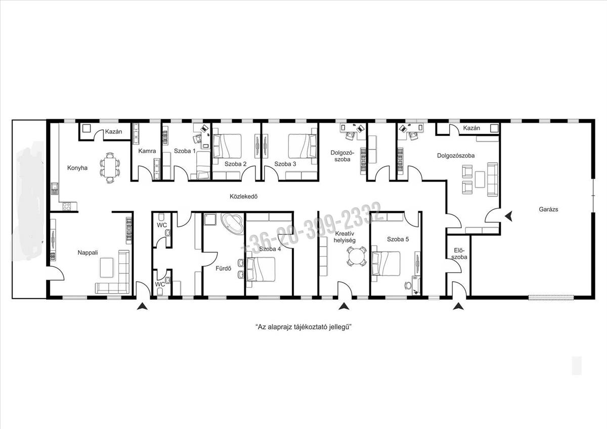 Ebből lett kialakítva egy 308 m2-es Ház, ami amerikai konyhás nappali + 5 hálószoba, 2 dolgozószoba, kreatív helyiség, kamra, gardrób, fürdőszoba káddal – zuhanyzóval és 2 Wc vel kialakított és +plusz a főházhoz egybe épült 90 nm-es fedett garázs, és azon túl pedig a zárt és nyitott csarnokokkal, mintegy 360 m2 nagyságban.