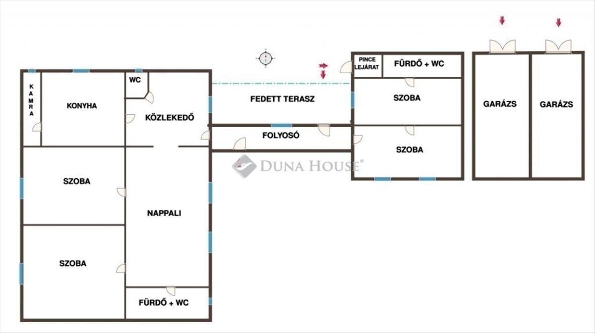 Ez a praktikus elrendezésű ingatlan nappalival + 4 hálószobával, tágas folyosóval és közlekedővel rendelkezik.