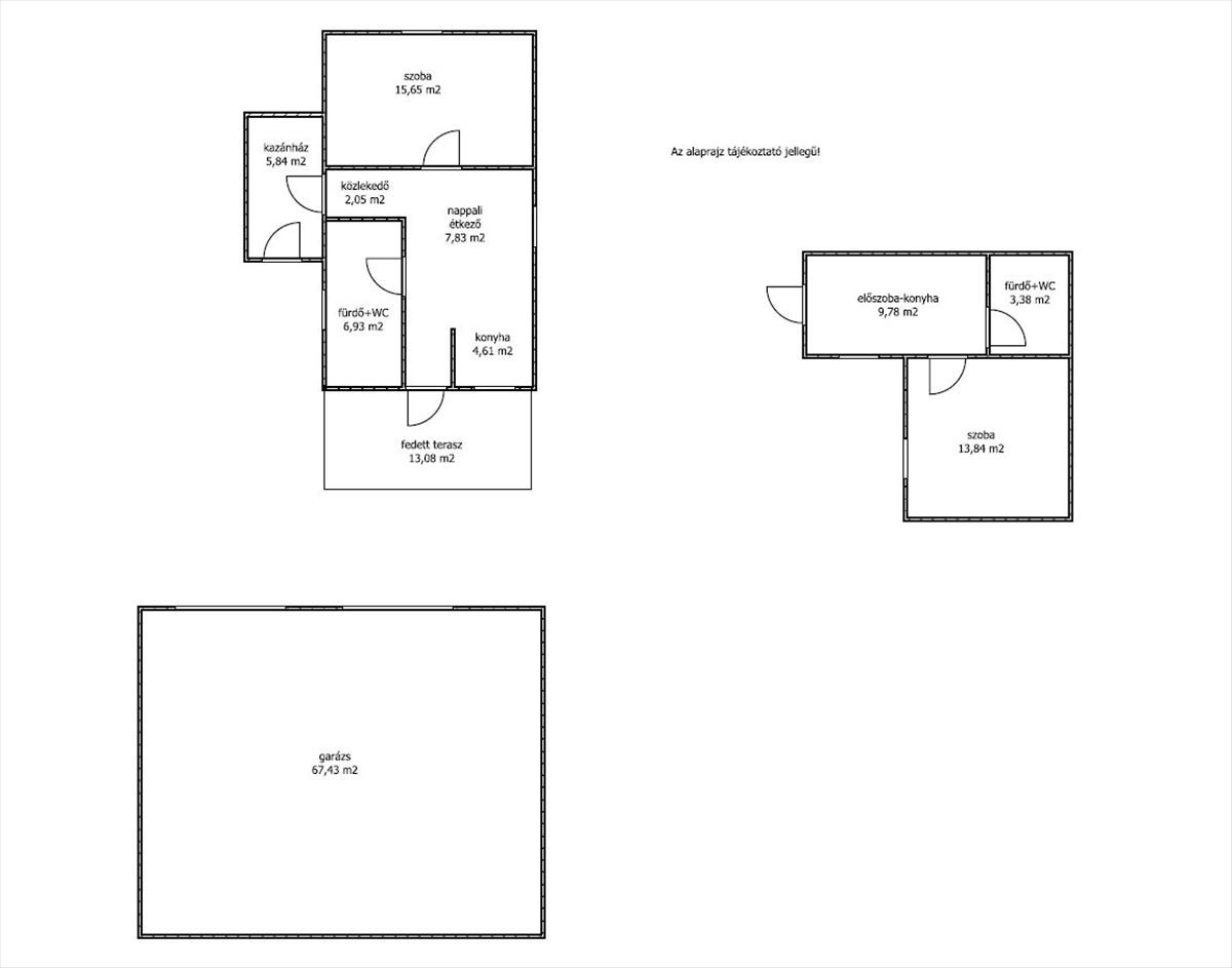 1. 50 m2-es lakóépület, melyben egy szoba, konyha, étkező, közlekedő, fürdő+WC került kialakításra. Falazata tégla. Fűtéséről vegyestüzelésű kazán gondoskodik radiátoros hőleadással. Nyílászárói műanyag szerkezetű, hőszigetelt ablakok.