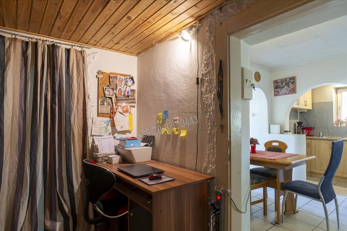 The main building features a bright living room, bedroom, fully equipped kitchen, dining area, bathroom, toilet, and spacious terrace; the smaller house offers two rooms, kitchen, and bathroom. Thick adobe walls and insulated wooden windows ensure a pleasant climate. The landscaped garden, 7x4 m swimming pool, and 34 sq. M. Garage/workshop make everyday life practical.