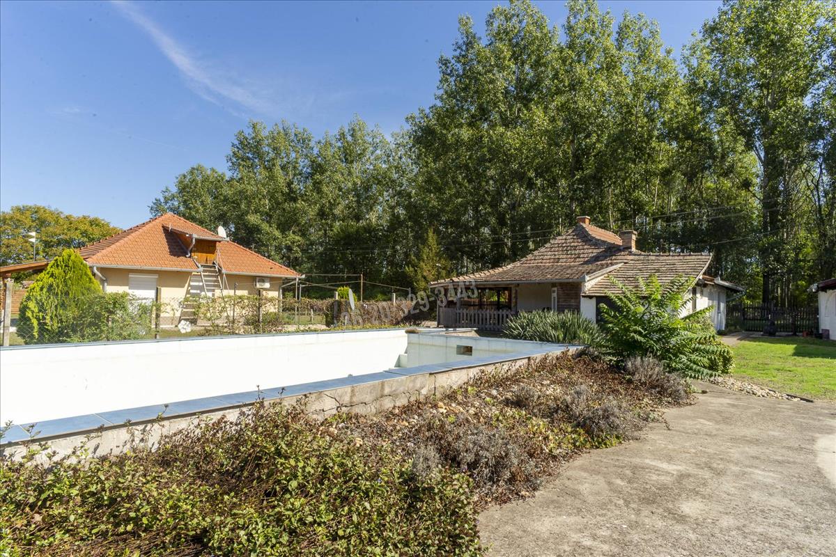 A főépületben világos nappali, különnyíló háló, jól felszerelt konyha, étkező, fürdő, wc, tágas fedett terasz, míg a kisebb házban két szoba, konyha és fürdőszoba található. Az 50 cm vályog falazat, hőszigetelt fa nyílászárók biztosítják a kellemes klímát. a tágas udvaron parkosított kert, 7x4 m-es medence, valamint 34 nm-es garázs/műhely segíti a mindennapokat.
