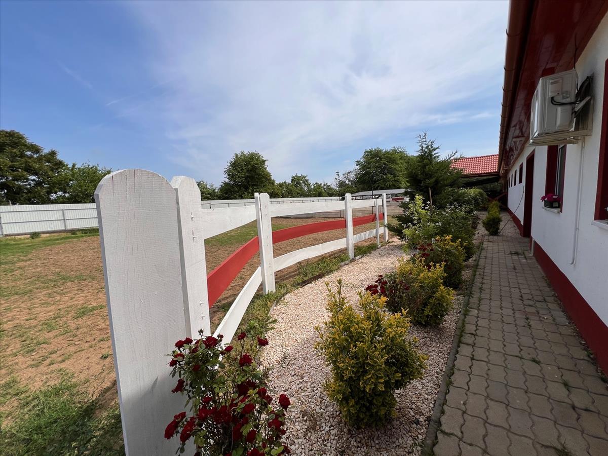Nyíregyháza Mandabokorban, 440 nm-es, Kiváló állapotú, fedett lovarda, Nappali+1 Szobás családi házzal, 4600 nn-es telekterülettel eladó.A lovarda 2022-ben téglából épült, minden szükséges engedéllyel, teljes közművel, 19 állásos box (automata etetővel, itatóval), 5 lovas automata ló jártatógép, patamosó, nyeregtároló, termény, takarmány tároló, ugrató pálya tartozik hozzá. Az ingatlan napelemmel, klímával, padlófűtéssel ellátott, kiváló állapotú.