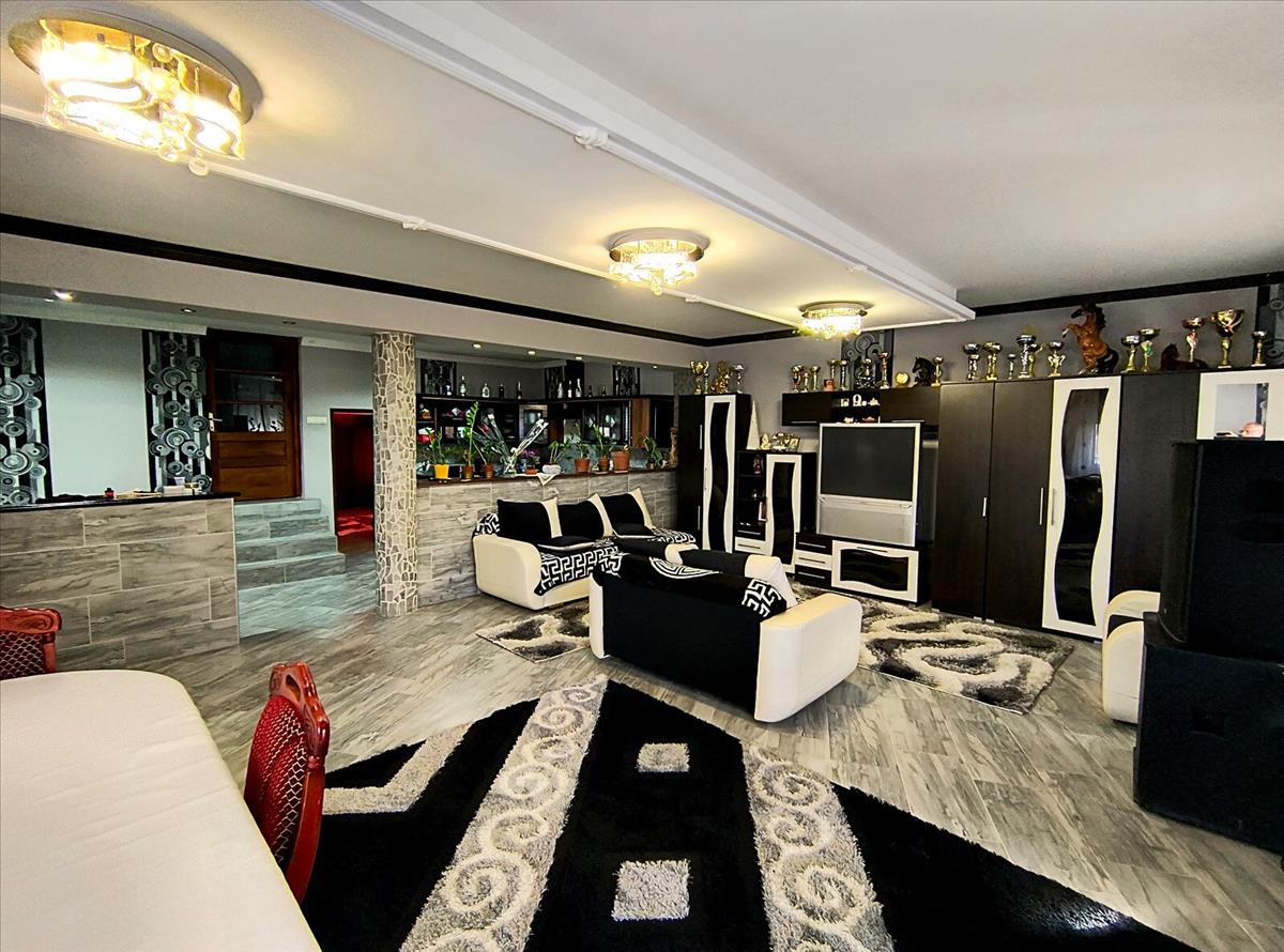 Nyíregyházától pár percre Felsősima közelében eladó egy 320 nm-es, 5 szoba + 2 nappalis, dupla komfortos, vegyes falazatú családi ház 5980 nm-es telekterületen, 6 bokszos istállóval.