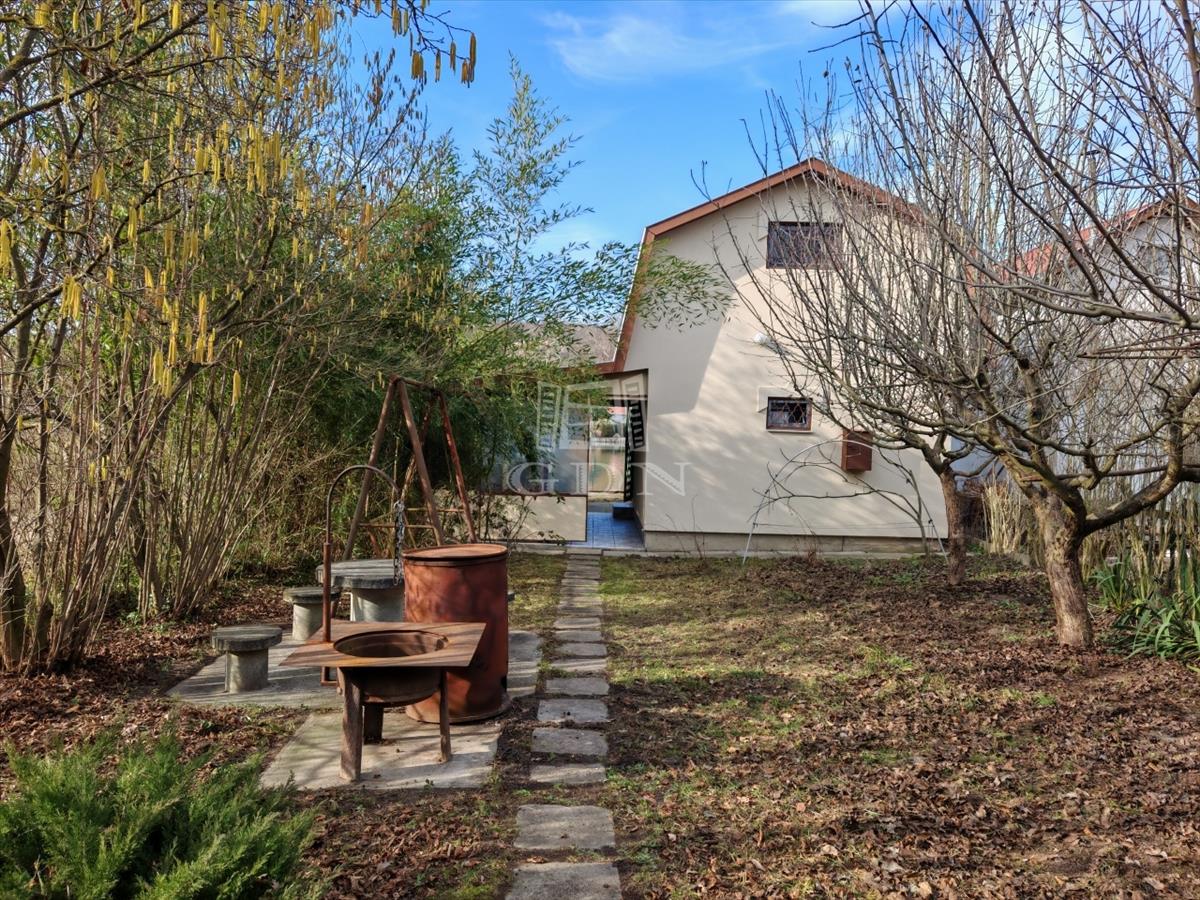 A telek sarok telek, ezért szerencsés módon, csak egy oldalról van csak szomszéd. Privát életteret biztosít. a kertben zuhanyozási lehetőség, sütögető, és bogrács is helyet kapott.
