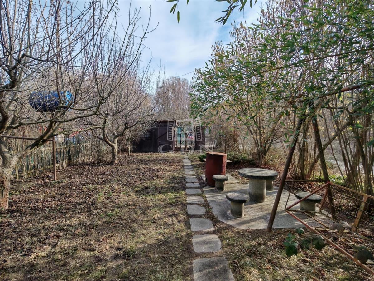 A telek végében, fa szerkezetű szerszámtároló és kültéri wc húzódik.