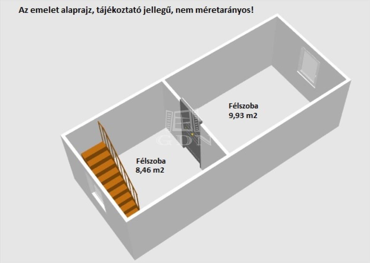 Az emeleten, egymásba nyíló 2 db félszobát találunk.