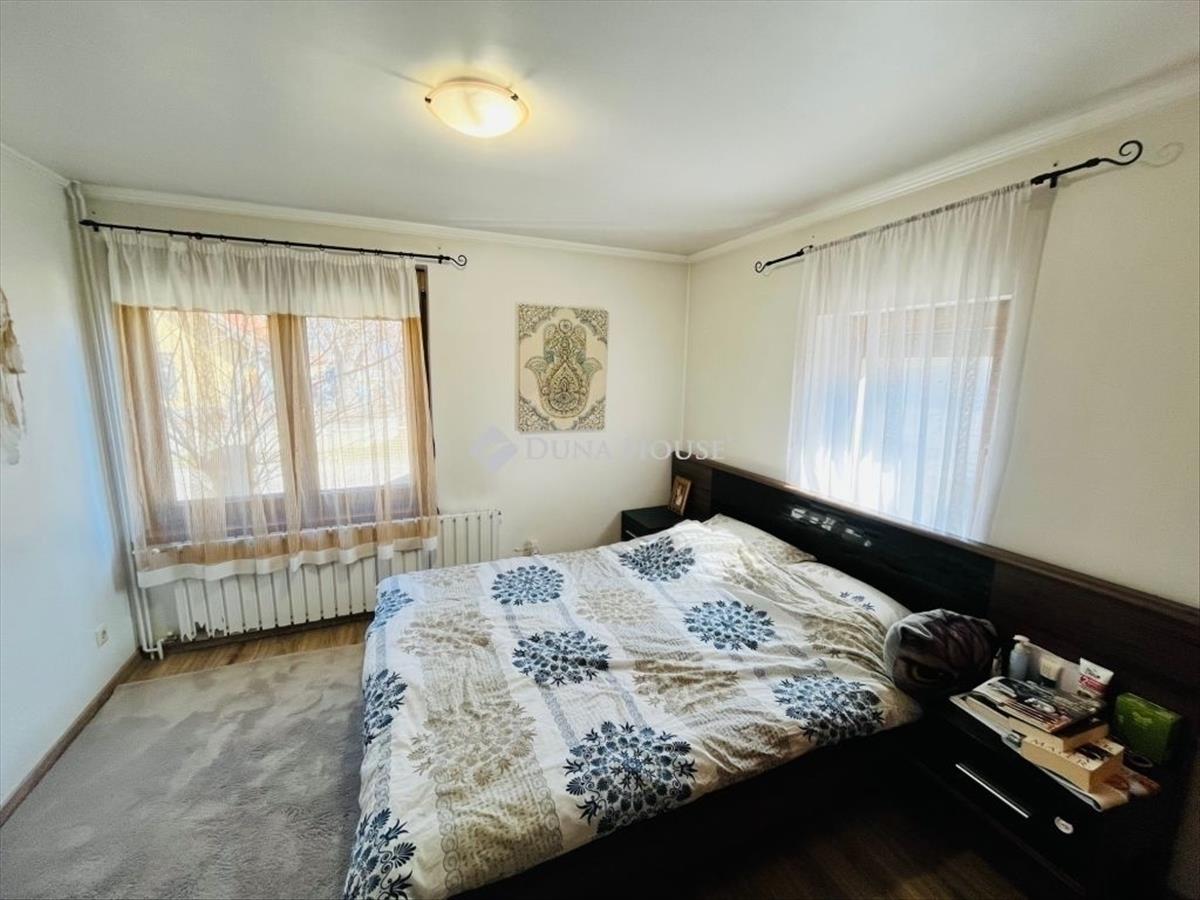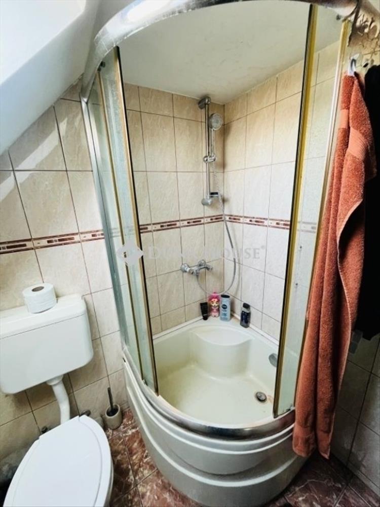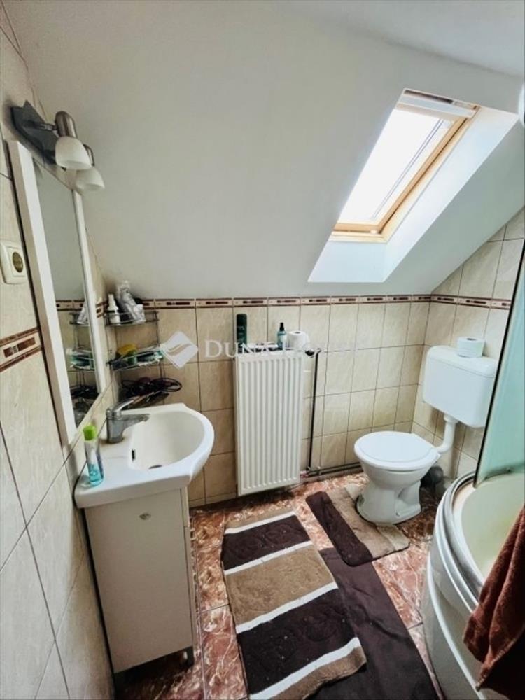 Elrendezés: Az alsó szinten 2 szoba, tágas konyha-étkező, fürdő (kád + zuhanyzó) és külön wc található. Az emeleten további 2 szoba és egy második zuhanyzós fürdő kapott helyet.