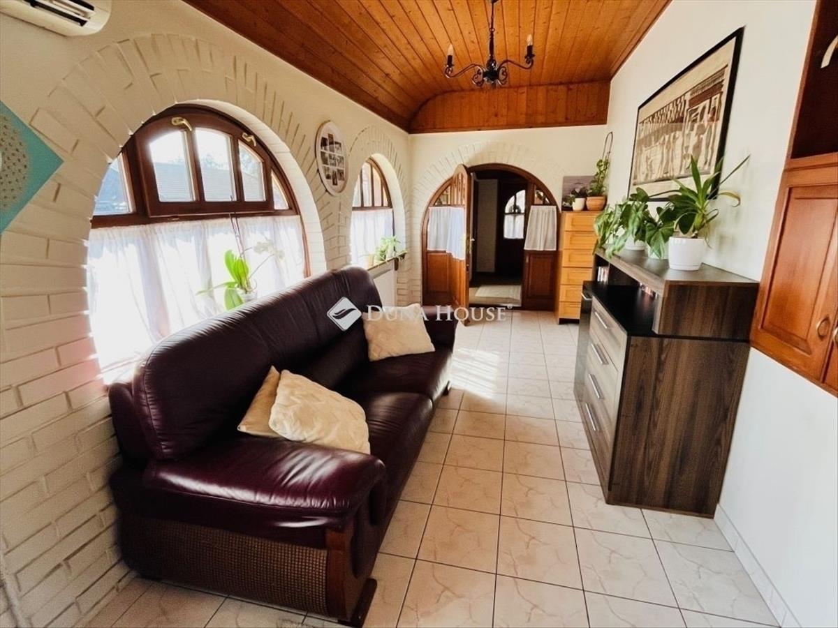 Extrák: 32 m²-es esztétikus fedett terasz, 40 m²-es kitéglázott, száraz pince és automata locsolórendszer a kertben.