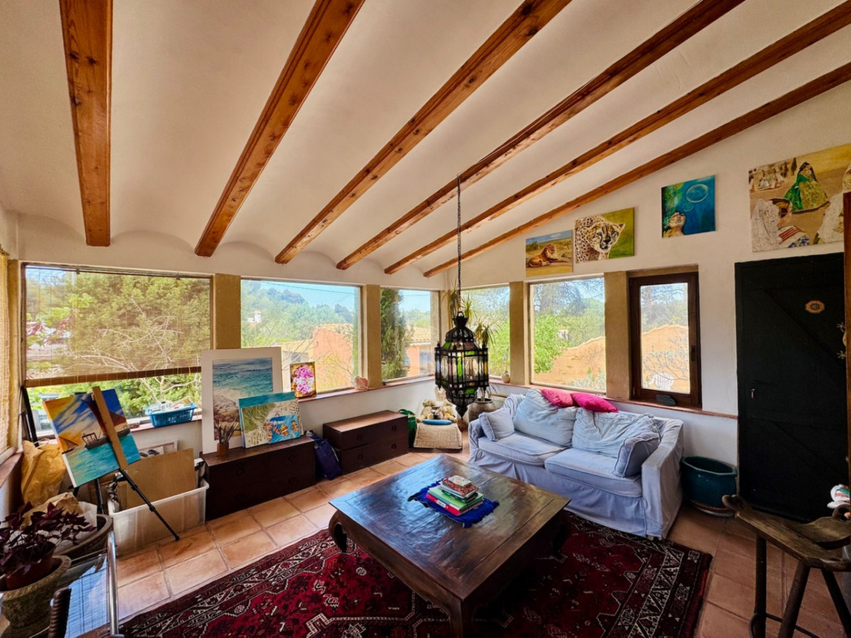 A Montgo természeti park közepén található ez az autentikus mediterrán villa potenciállal. Garantált zöld terület, ahol új építkezés nem megengedett, csendes helyen még csak 8 percre a nyüzsgő központjában Javea. Egy elektromos tolókapun keresztül a lakókocsival, 4 autós parkolóval és egy kis Casitához való közvetlen hozzáféréssel, melyet pillanatnyilag műteremként használnak. a háznak és a vendégháznak is saját bejárata van.