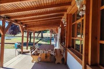 Mindkét lakrészből kényelmesen megközelíthető a szépen kialakított fedett terasz.