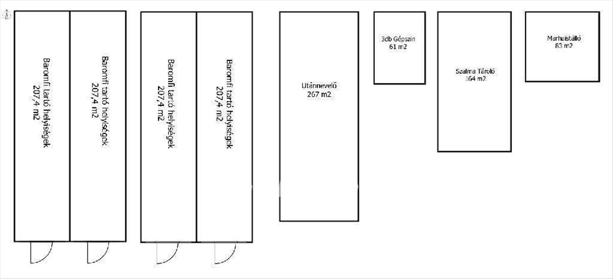 4 Db baromfitartásra kialakított épület, működő rendszerekkel, 60 m mély fúrtkút, önálló vízellátással. Fűtését korszerű szénkazán, alacsony fenntartási költségek mellett.