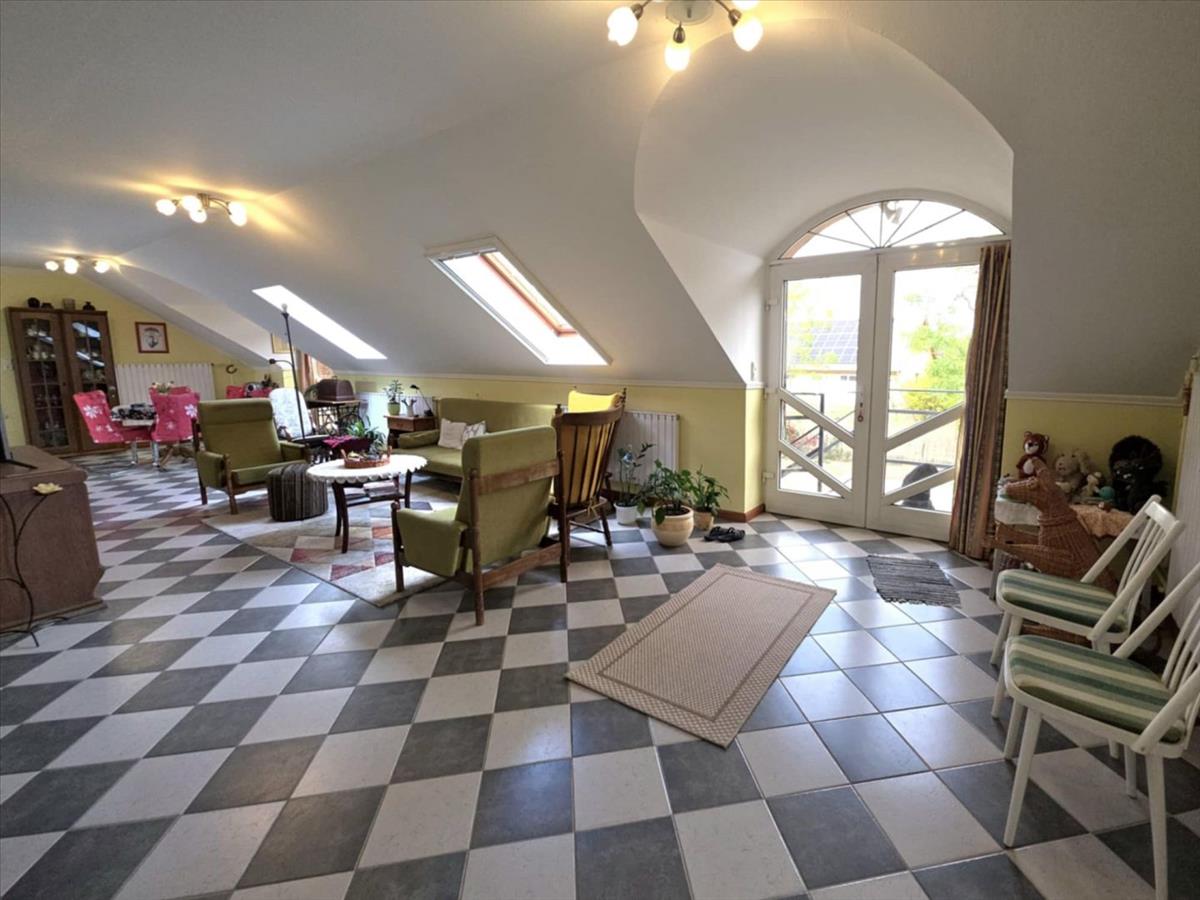 Felsőszint: 151 nm , kialakítása: 3 hálószoba, amerikai konyhás nappali, fürdőszoba, kamra, tárolótér.