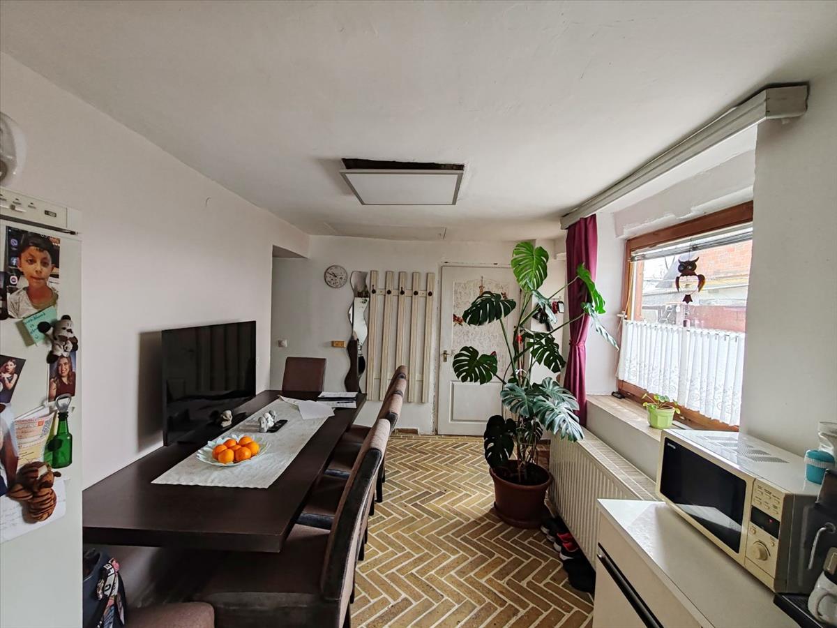 Az előszoba-konyha -étkező burkolata vágott tégla, itt található egy új konyha szekrény, mosogató innen nyílik a fürdőszoba-WC, nappali.