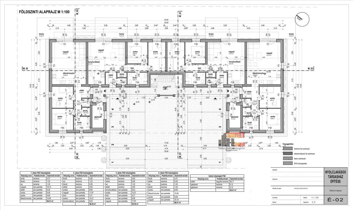 Fsz 60, 41 nm lakás + 15, 30 nm terasz + 106, 032 nm zöldövezet 33. 800. 000 Ft + telekár+ parkoló