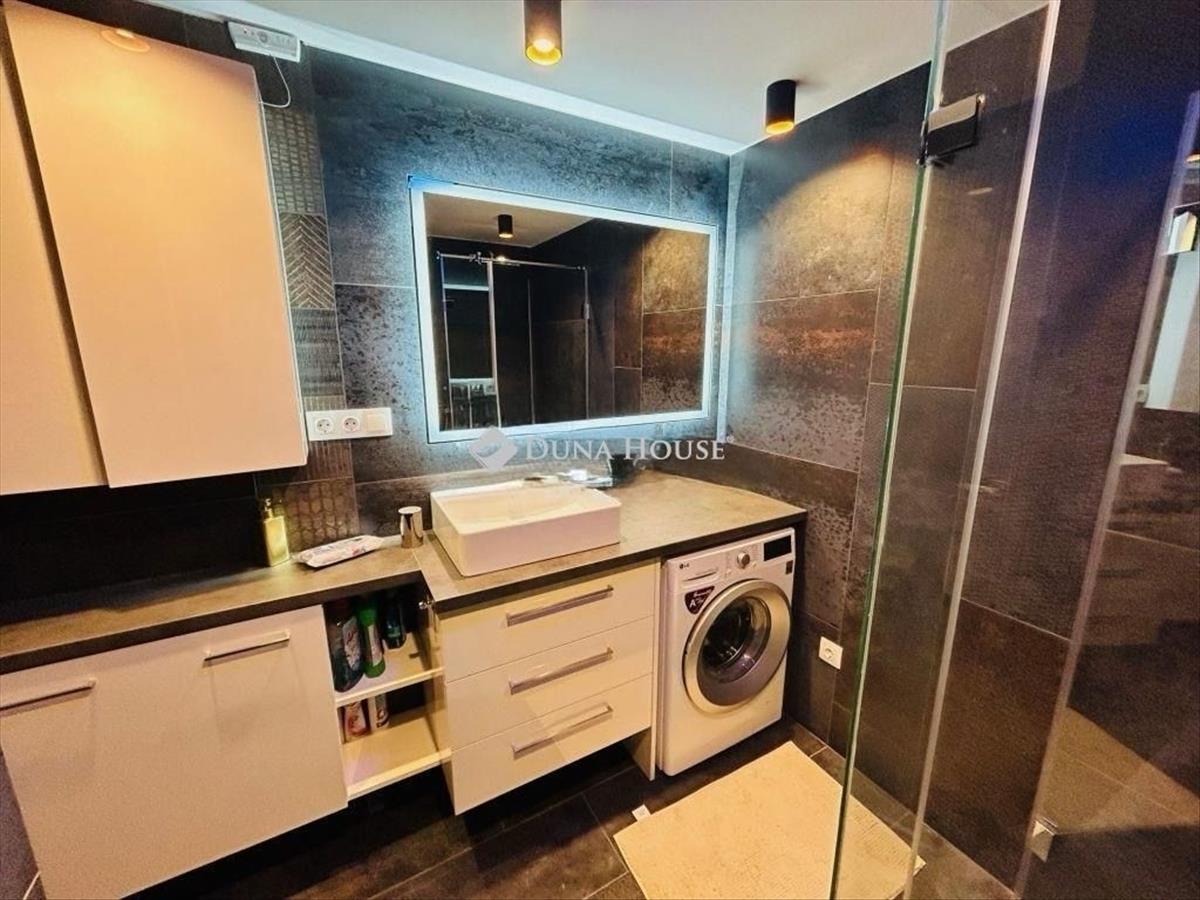 A lakás egyedi tervezésének köszönhetően az egész nap folyamán árad belére a természetes fény, ami kellemes, meleg hangulatot teremt. Az ingatlanban található tágas nappali tükrözi a modern életstílust, míg a panoráma ablakokból és a teraszról nyíló kilátás lenyűgöző.