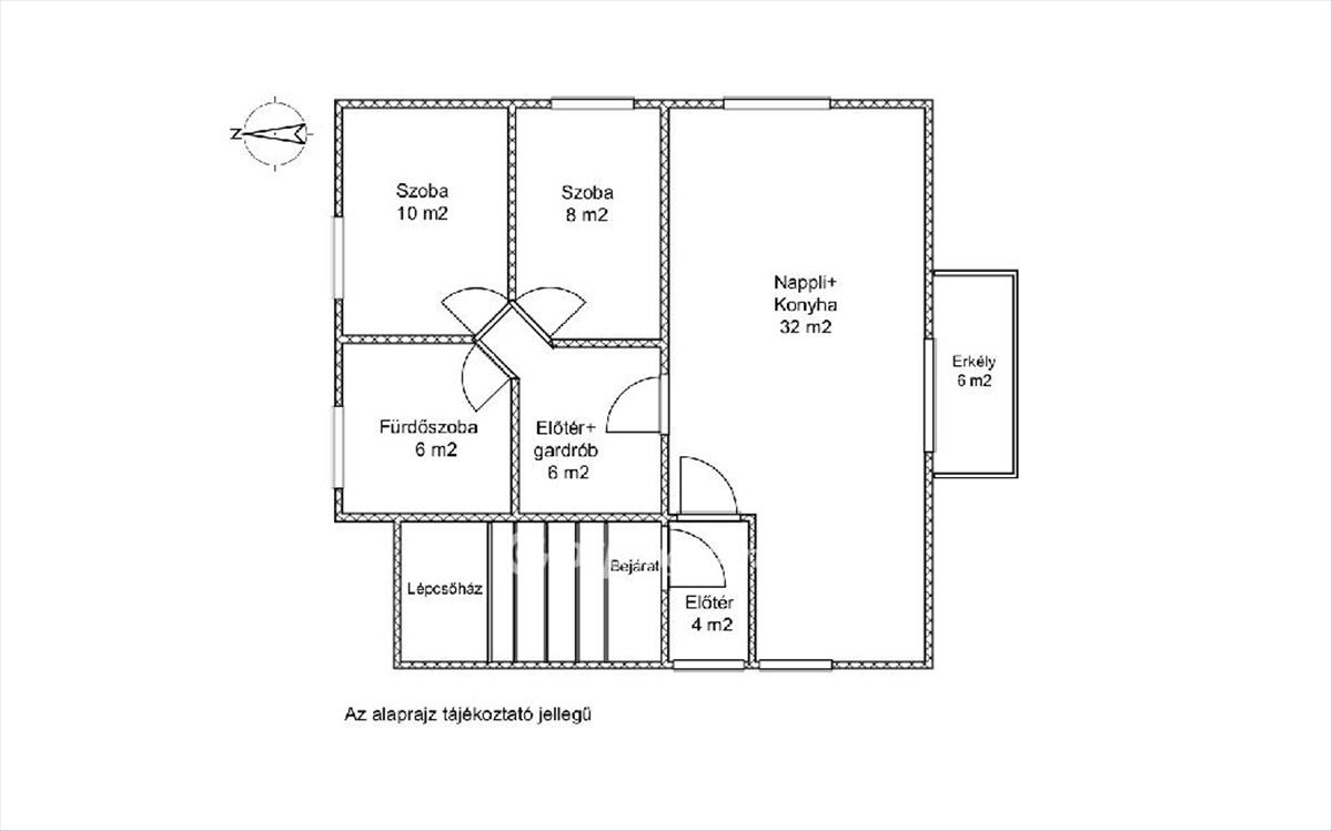 A lépcsőházból az előszobába érkezünk, innen a világos, amerikai konyhás nappali nyílik, közvetlen kijárattal az erkélyre. a gardróbos előtérből két külön nyíló hálószoba, valamint egy zuhanyzós fürdőszoba WC-vel található.