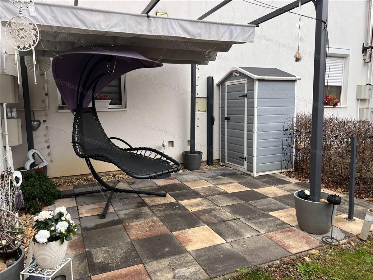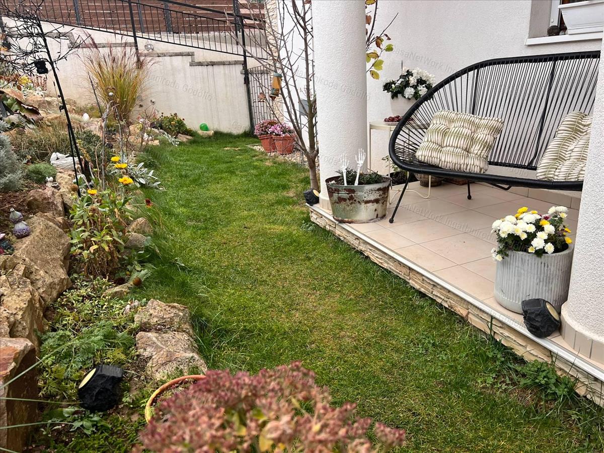 A nappaliból közvetlenül egy hangulatos teraszra léphetünk ki, ahonnan sziklakert és egy privát, kizárólagos használatú kertrész tárul elénk – tökéletes helyszín relaxáláshoz, baráti beszélgetésekhez, vagy akár egy homokozó, hinta kialakításához a gyerekeknek.