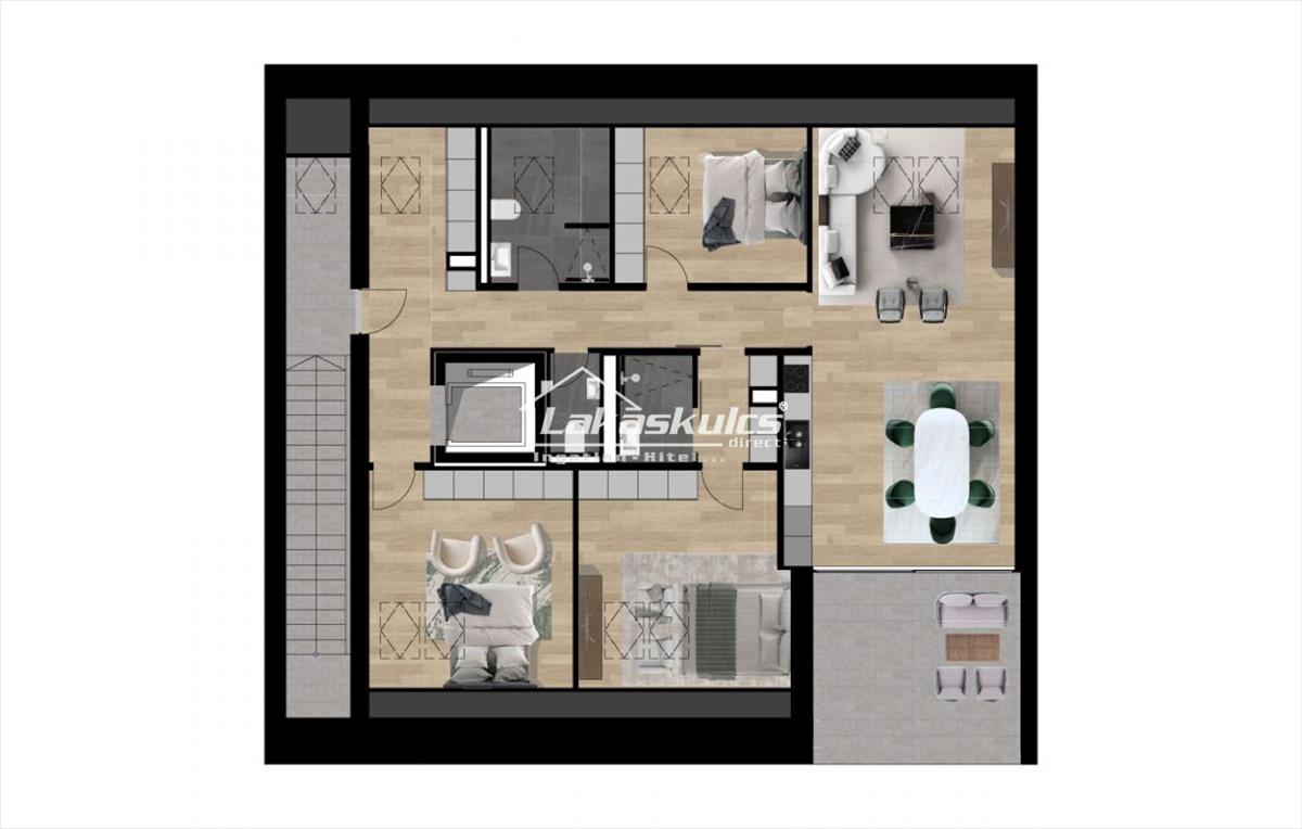 Az összes lakás úgy lett kialakítva, hogy nagyon jó tájolása legyen, s panorámája. Mindegyikhez saját terasz/erkély tartozik.