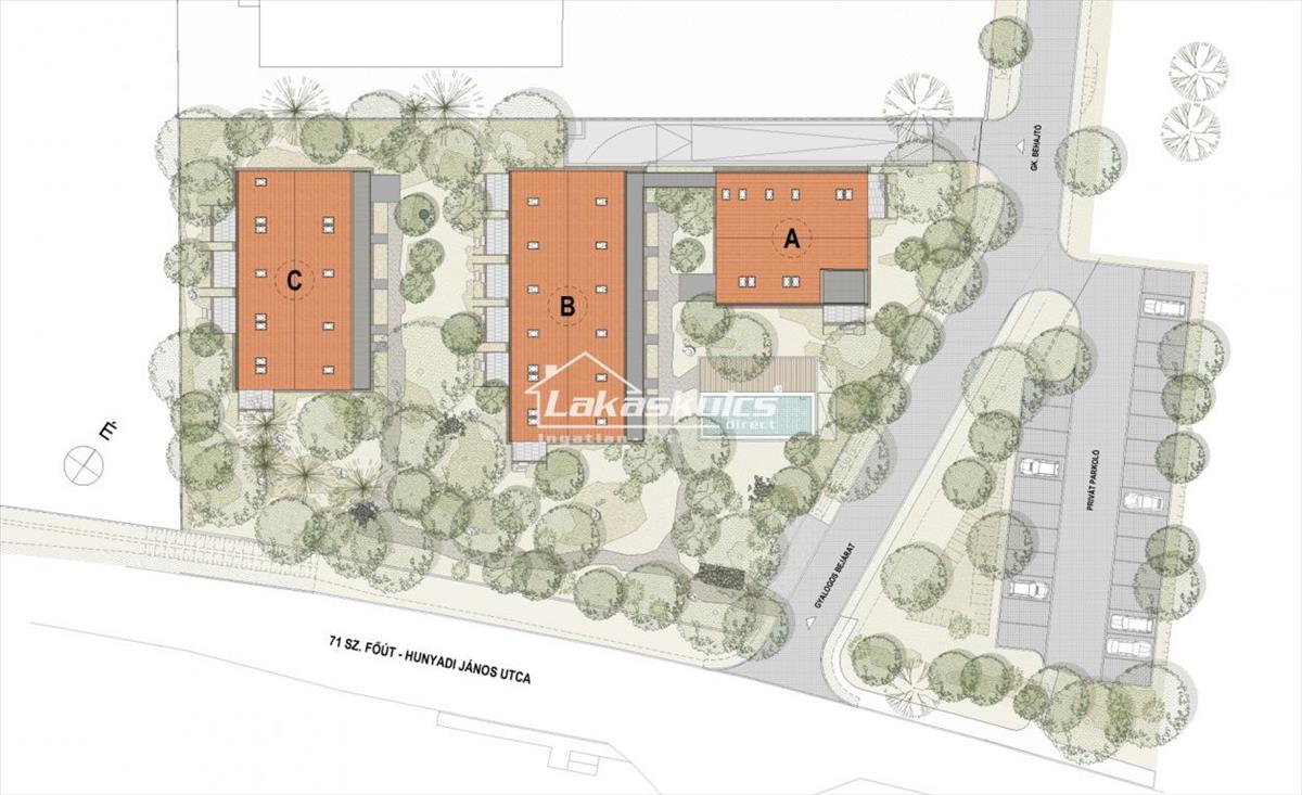 Az ingatlanok építése már javában folyik, a 32 db lakásból 6 db elkelt. 3 Db épület épül a lakóparkban egyszerre, a, b, c épület, 4 szintesek.