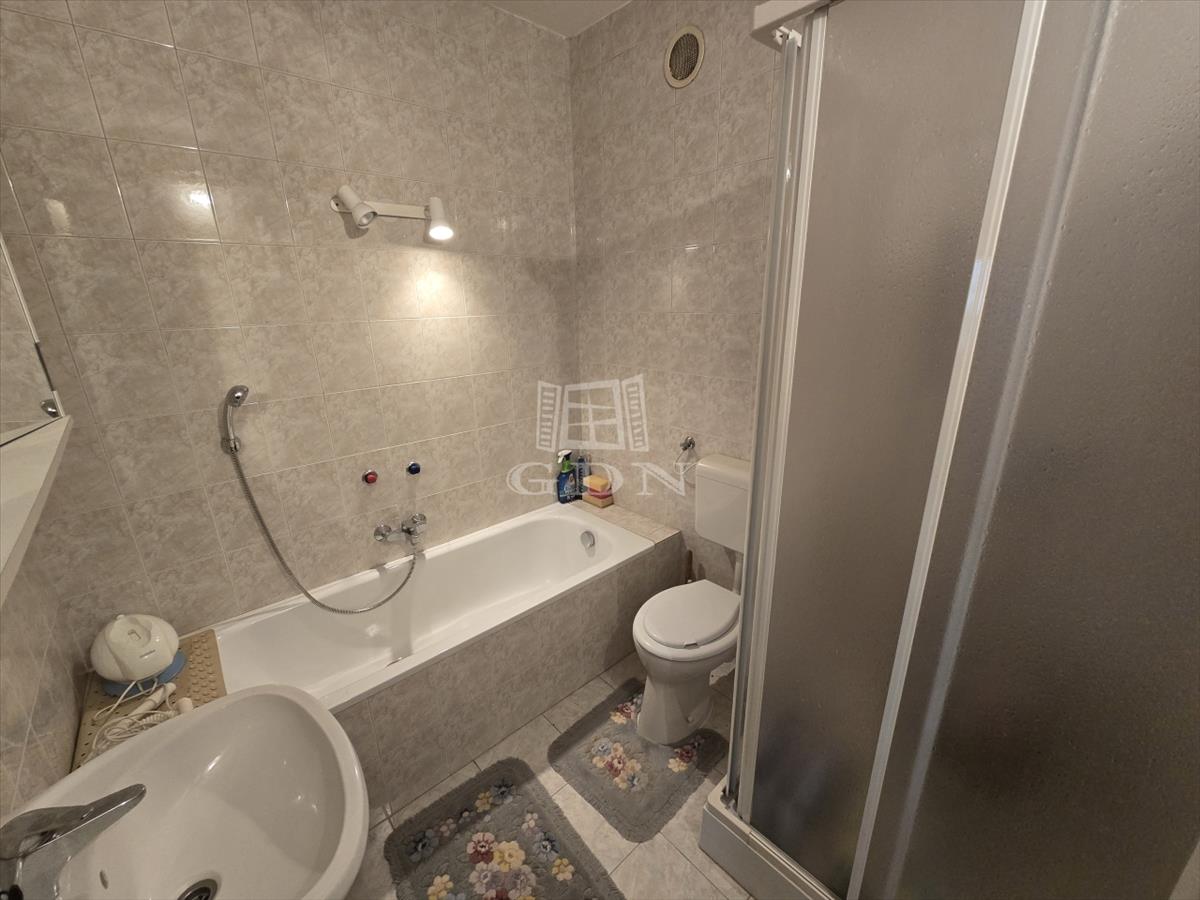 - Nagy méretű fürdőszoba káddal és zuhanyzóval, ahol a wc is helyet kapott.