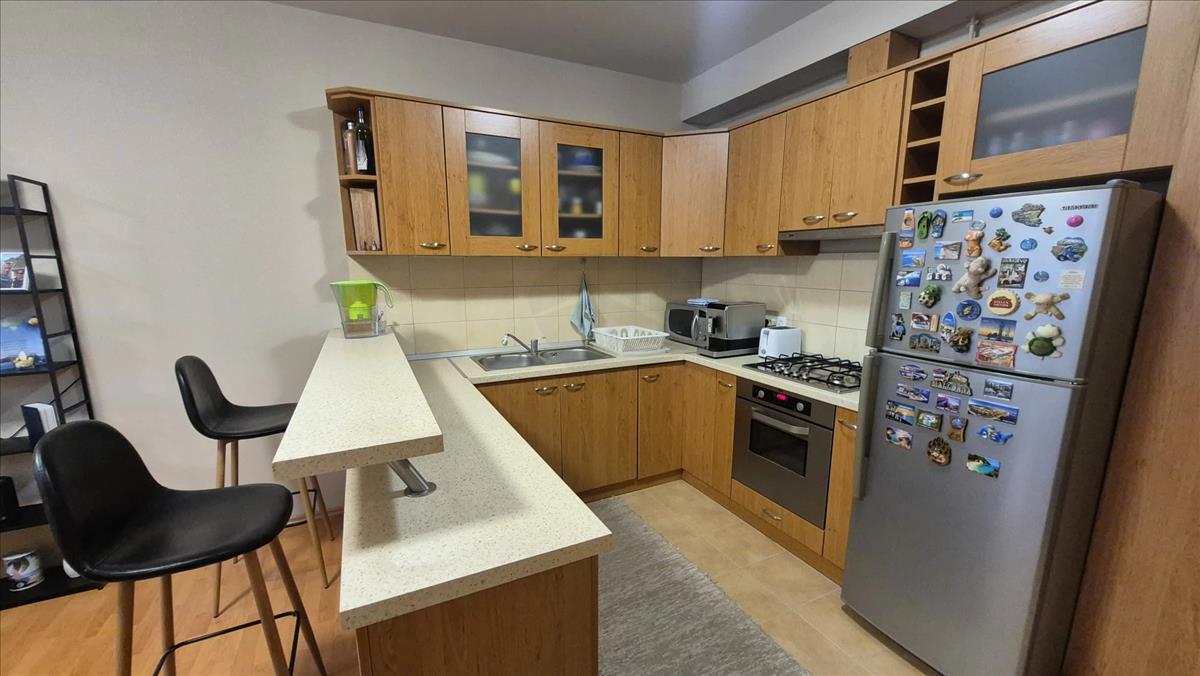 A beépített konyha minőségi anyagból készült, a burkolatok modernek, kifogástalan állapotúak. a nyári melegben klíma biztosítja a komfortot, a közös tároló pedig segít abban, hogy ne a lakásban kelljen kerülgetned a bicikliket vagy a szezonális holmikat.