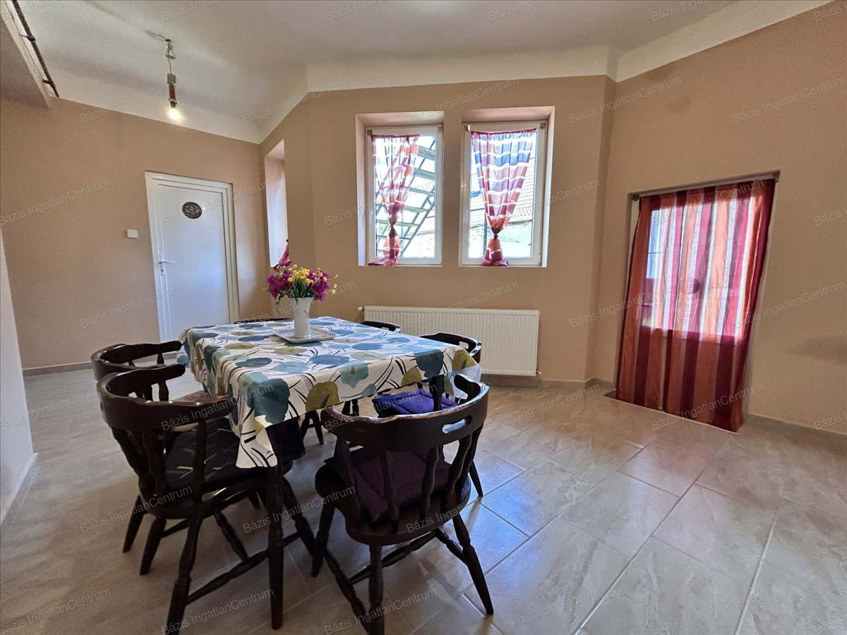 Bács-Kiskun megye Baja alvégi részén 2025-ben belül felújított, 100 nm -es, 3m belmagasságú, 2 lakásos családi ház egyik lakása eladó. Az ingatlan vegyes falazattal és fa födémmel épült a 70-es években. A 100 nm -es földszinten található egy világos nappali, étkező, konyha, wc, fürdőszoba, közlekedő és kettő hálószoba. a 60 nm -es, külső falon lévő feljárón megközelíthető tetőrészben kettő szoba, wc és konyha alakítható ki. a fűtésről kondenzációs kazán gondoskodik. a világos, jó elosztású családi ház járólapos és laminált burkolattal van ellátva, nagy részben hőszigetelt nyílászárók kerültek beépítésre, minden burkolat új, a vakolat, a festés, a földszinti víz-, villanyvezetékek és firelé újak. Az ingatlan még egy lakással közös kapubejáróval rendelkezik, az udvar közös, de van használati megosztás. A ház akár befektetési célból, illetve több generáció számára is kiváló választás lehet.
