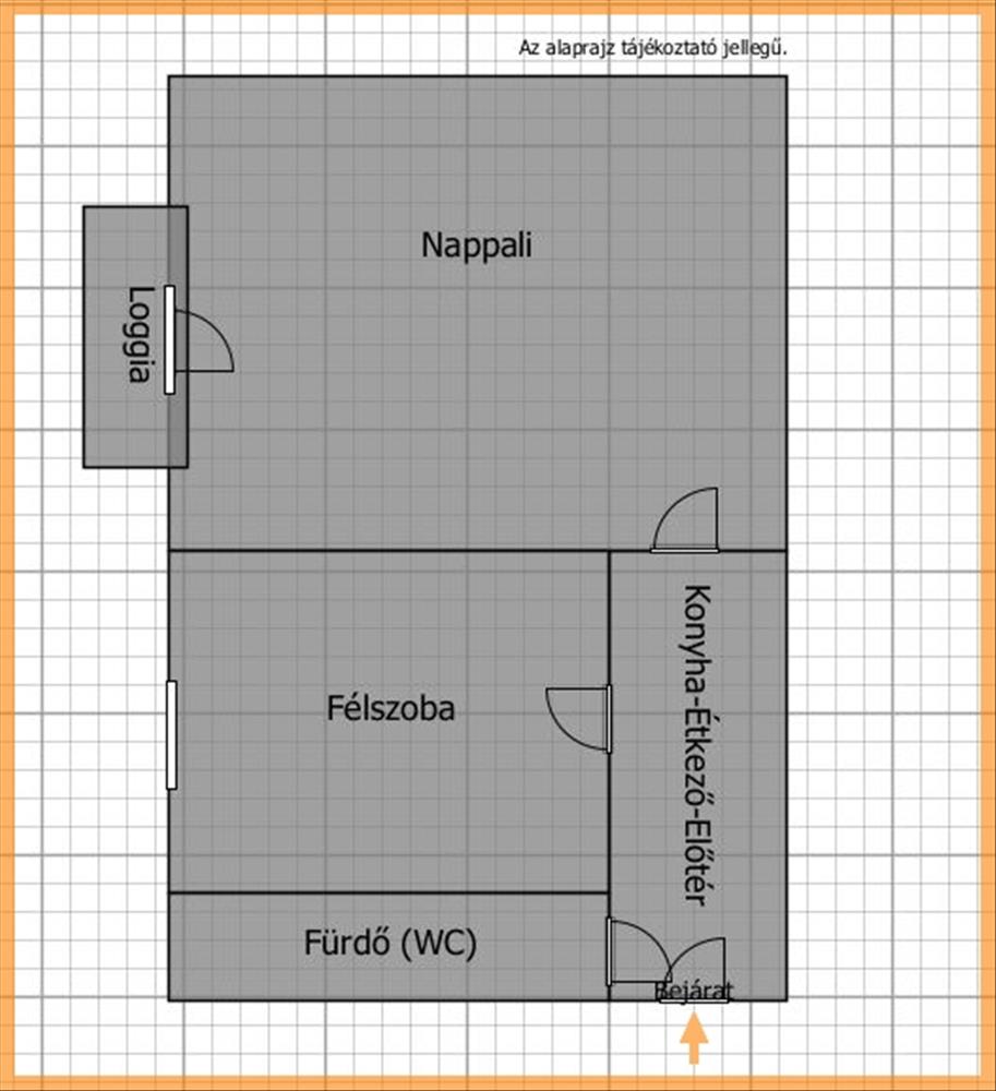 A 35 m2-es (tulajdoni lap szerint 1 szobás lakás) eredeti elosztását megváltoztatták: előtér-konyha-étkező, nappali (loggia-val), 1 félszoba (tárolóval), és fürdőszoba (WC-vel). a beépített-gépesített konyhabútor, illetve a nappaliban lévő szekrénysor tartozék, külön megállapodás szerint teljes berendezéssel együtt is átvehető az ingatlan.