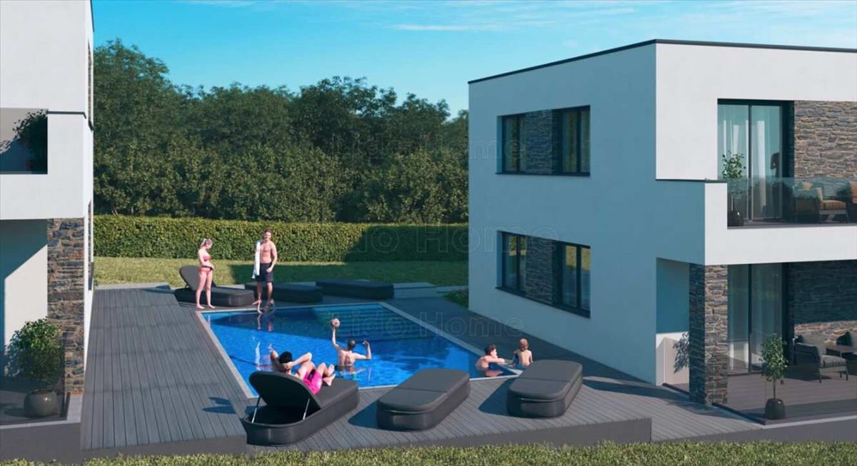 A társasház udvarán közös használatú medence szolgálja majd a lakók kényelmét. a kertben a medencén túl közösségi kerti grill, és lounge sarok is kialakításra kerül.