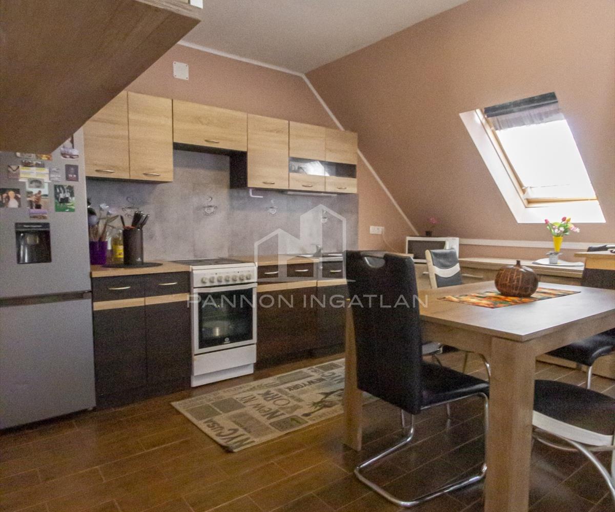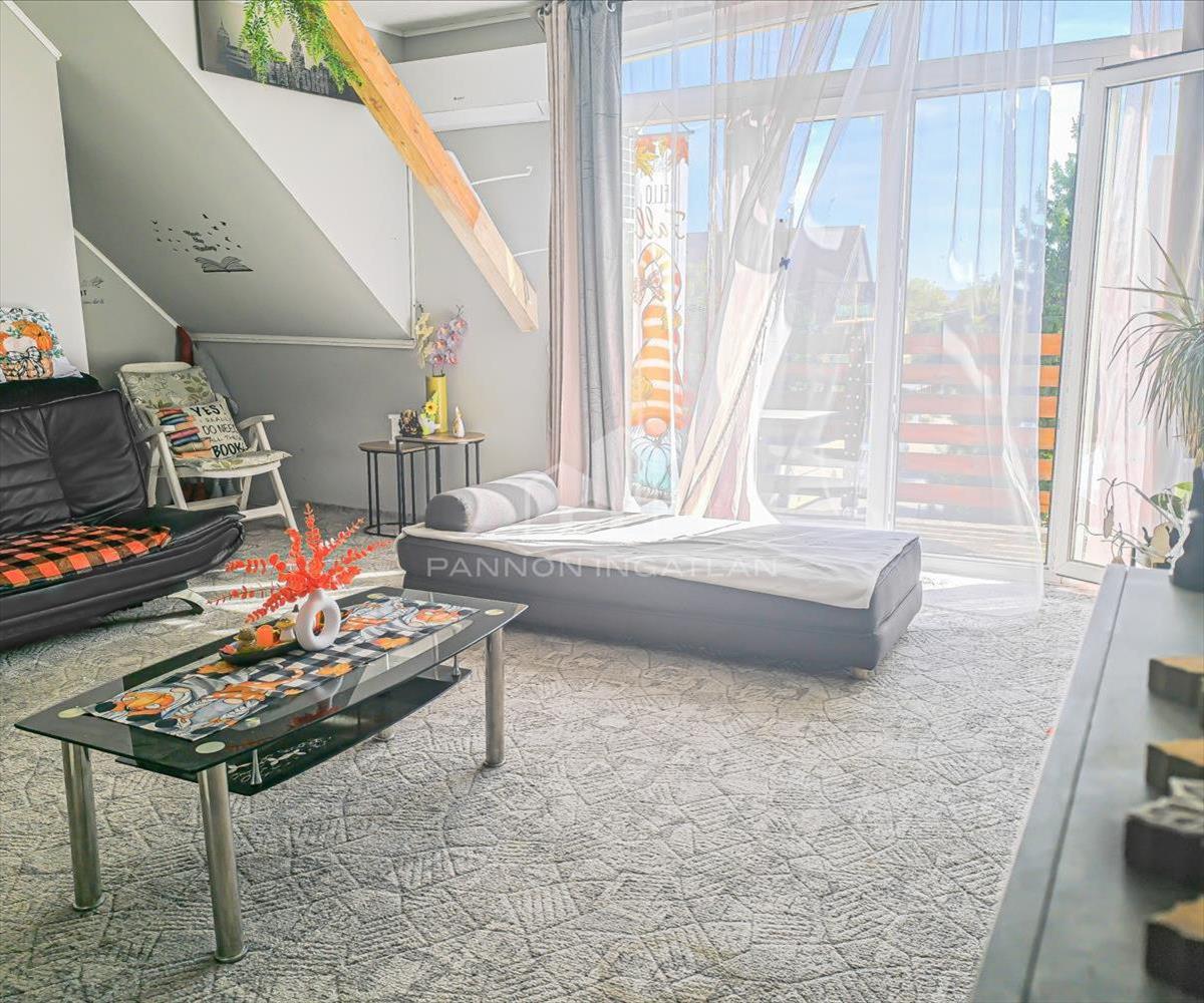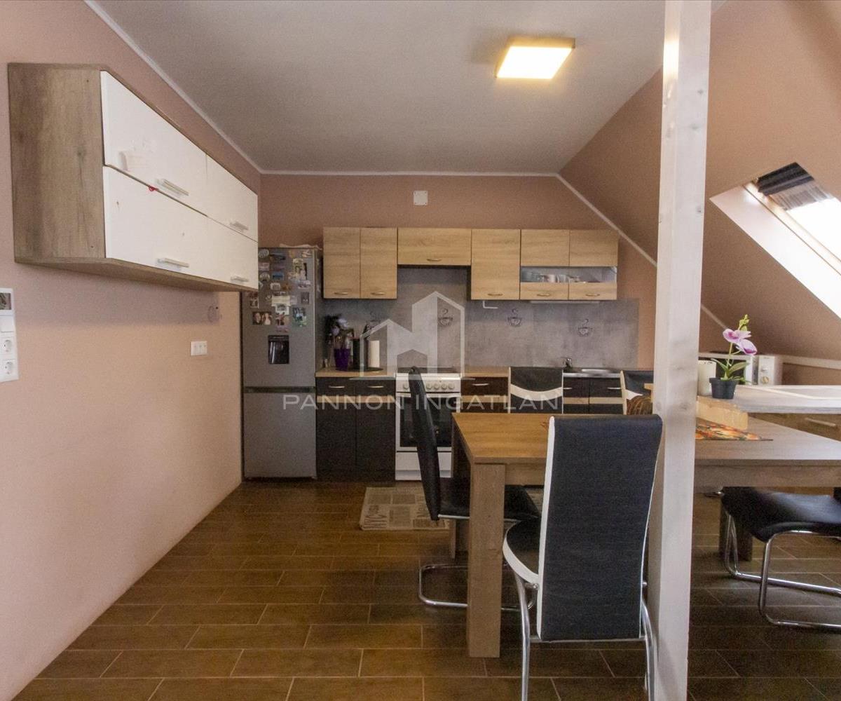 Az épület szigetelt (8 cm), a lakásban a felső szinten nagy méretű műanyag nyílászárók, valamint Velux tetőablakok találhatók.