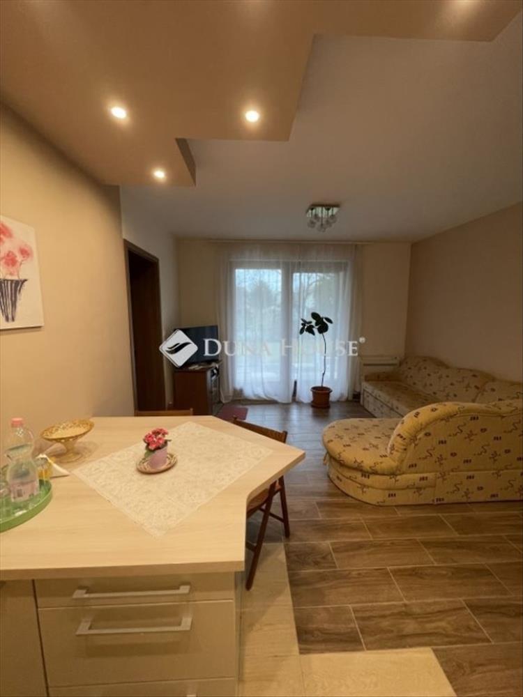 A nappaliból közvetlenül elérhető a gondozott, saját használatú kertkapcsolat, amely kellemes pihenőteret biztosít.
