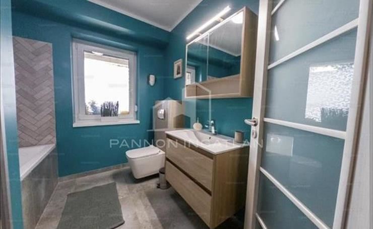 -ÚJ burkolatok, minőségi anyagokkal. Ravak szaniter, Ravak csapokkal, prémium mosdószekrény a fürdőben. a törölköző szárító radiátor mind gázzal, mind elektromosan is fűthető.