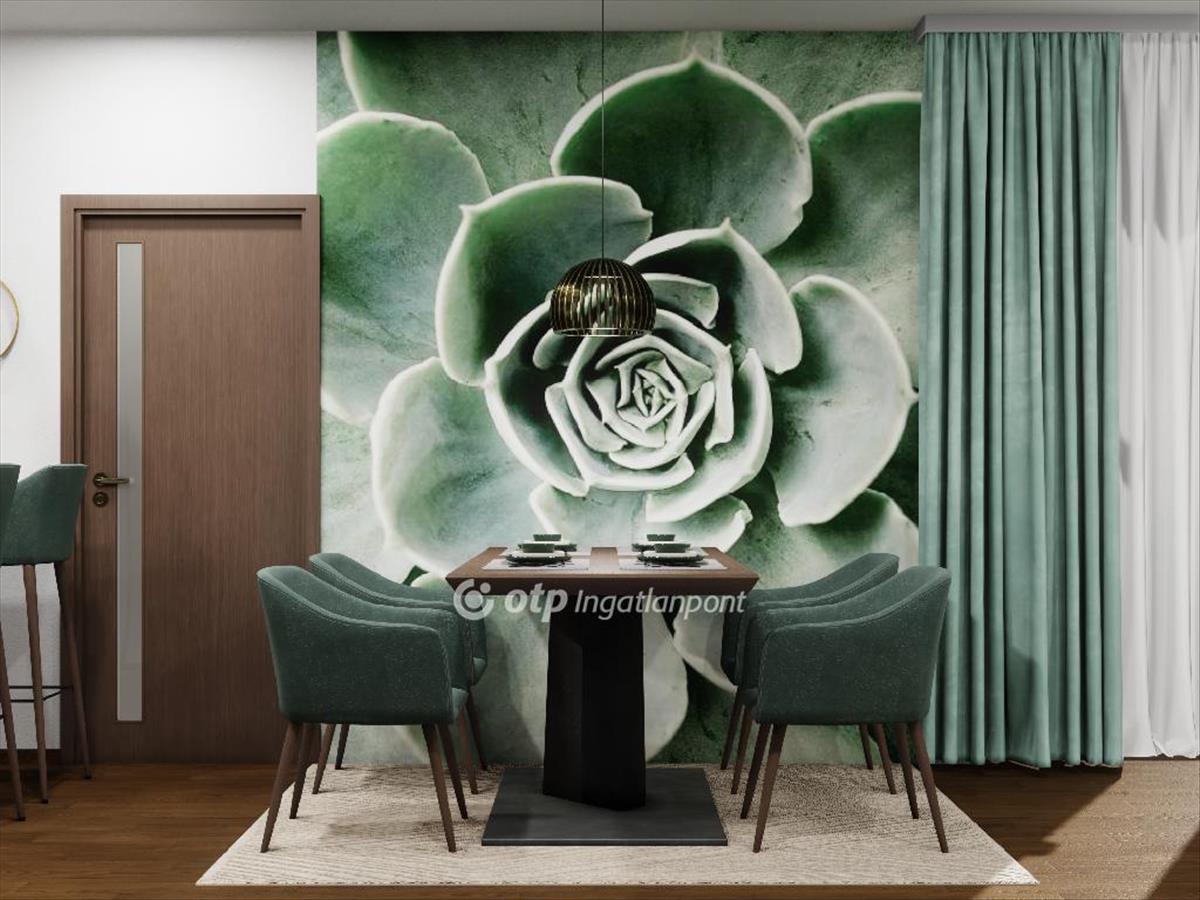 Elrendezése: Előtér: 6, 18 m2, nappali: 16, 8 m2, konyha+étkező: 16, 87 m2, szoba: 9, 26 m2, szoba: 12, 15 m2, fürdőszoba 7, 84 m2, terasz: 14, 31 m2