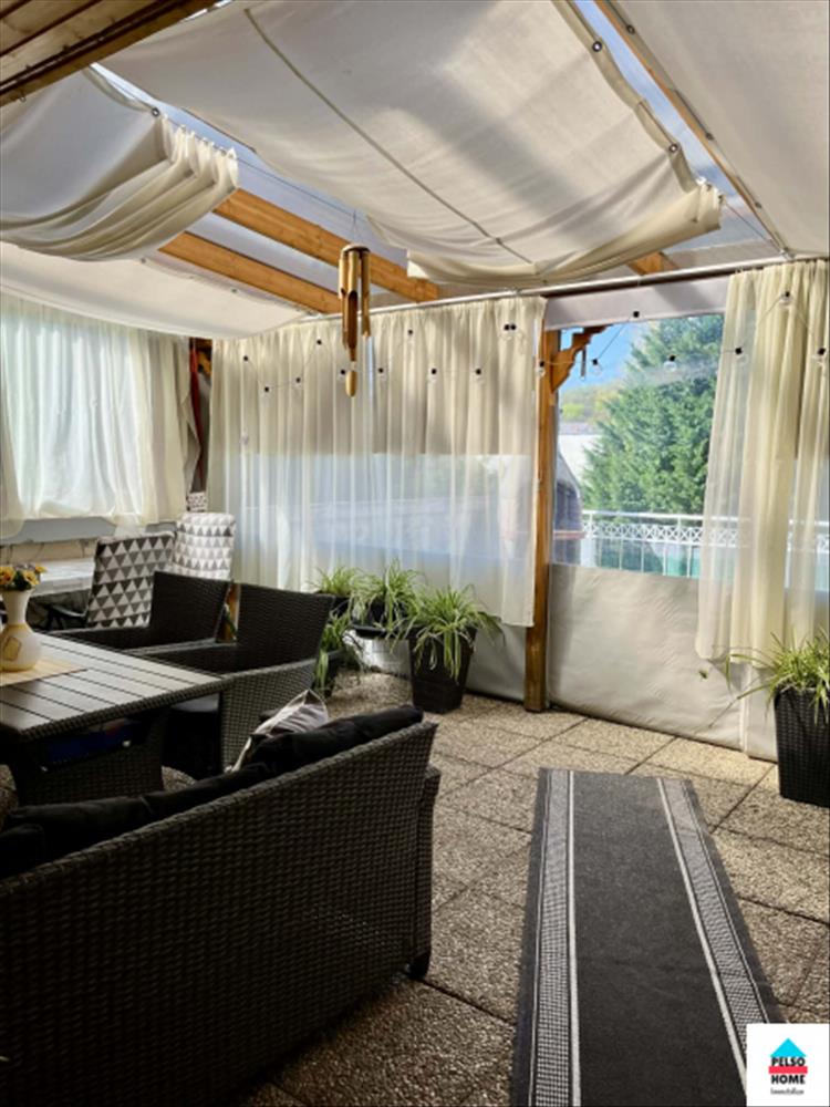 In Balatonboglár, in einer ruhigen Straße, steht diese 90 m² große, zweistöckige Backsteinwohnung mit kompletter Möblierung zum Verkauf. Sie verfügt über eine 50 m² große Sonnenterrasse im Obergeschoss, einen herrlichen Panoramablick, eine private Garage und einen Garten. Die Wohnung befindet sich im ersten Obergeschoss und ist vom ca. 100 M² großen, umzäunten Privatgarten aus zugänglich. Im unteren Bereich der zweistöckigen Wohnung befinden sich ein großes Wohnzimmer, Einbauküche mit Essbereich, ein Flur mit großen Einbauschränken, Badezimmer (Dusche + wc), Speisekammer und eine riesige, nach Südwesten ausgerichtete, 50 m² große Terrasse im Obergeschoss, die teilweise überdacht und komplett privat ist. Im Obergeschoss befinden sich drei weitere Schlafzimmer, ein Bürozimmer, Badezimmer mit Badewanne und ein wc. Die Wohnung wird elektrisch (Drehstrom) beheizt, die Kühlung erfolgt über separate Klimaanlagen auf beiden Etagen. Warmwasser wird über einen Gasboiler bereitgestellt, und die Gasheizung kann bei Bedarf wieder eingeschaltet werden. Schöne Beläge, hochwertige Kunststofffenster, optimale Raumaufteilung. . . Eine wirklich geräumige und helle Wohnung!