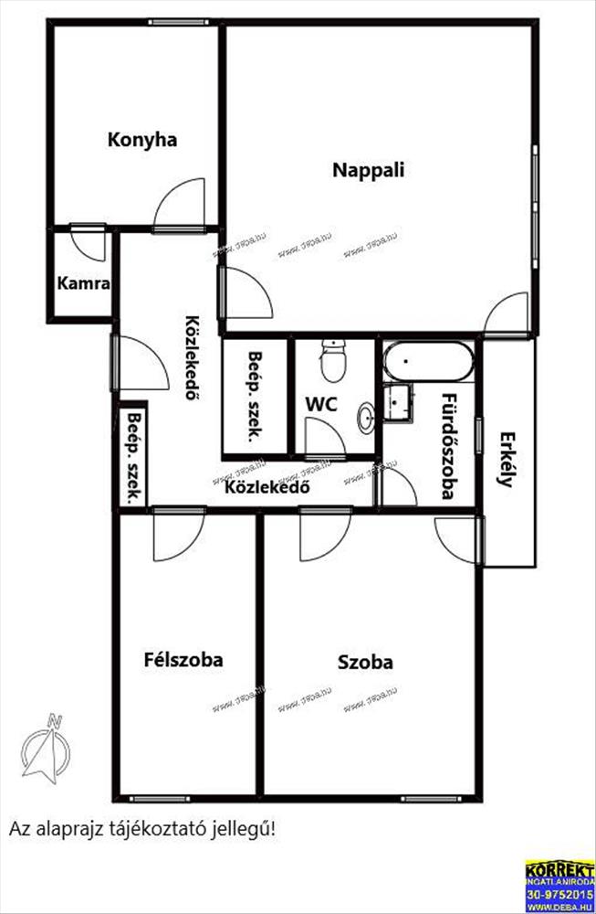 Helyiségek: Nappali, szoba, félszoba, konyha, kamra, fürdőszoba, wc, erkély, és 17, 6 nm-es garázs.