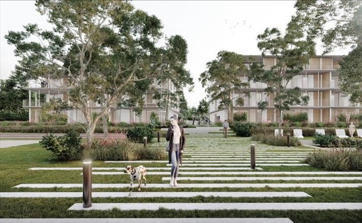 A lakásokhoz mindegyik szárnyon burkolt kialakítású lapos tetős teraszok készülnek. a földszinti lakásokhoz a teraszok mellett magánhasználatú kertrészek is csatlakoznak, a harmadik emeleten pedig épületszárnyanként 2-2 lakáshoz egy saját használatú zöldtetős tetőterasz is kapcsolódik. Zöldmezős beruházás, de a városépítészeti koncepció szerint a területre egy többemeletes, társasházas építészeti környezet lesz jellemző, amibe a tervezett épület is illeszkedik.