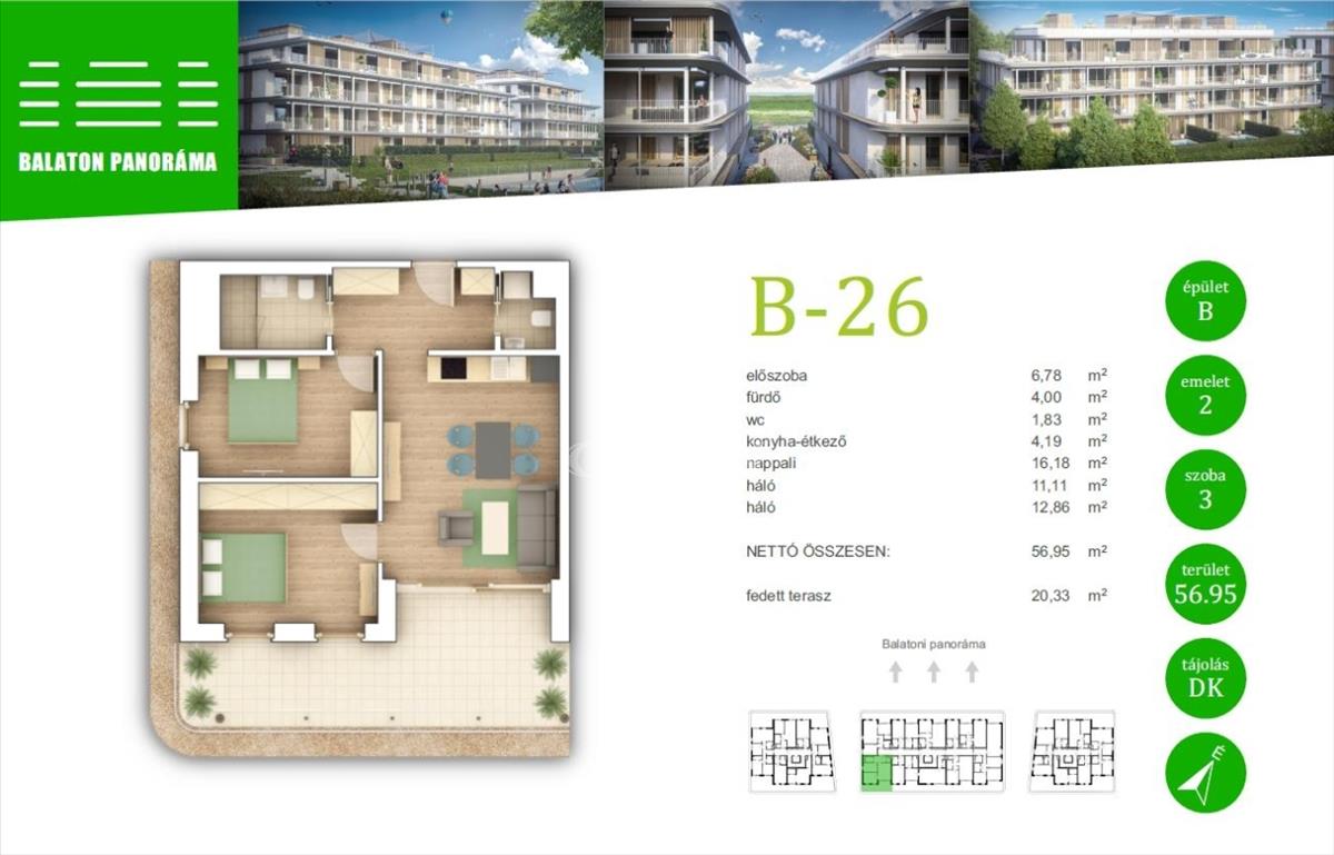 Ez a lakás nappali+2 hálós, 57nm alapterületű+ tartozik hozzá 20nm fedett terasz is.