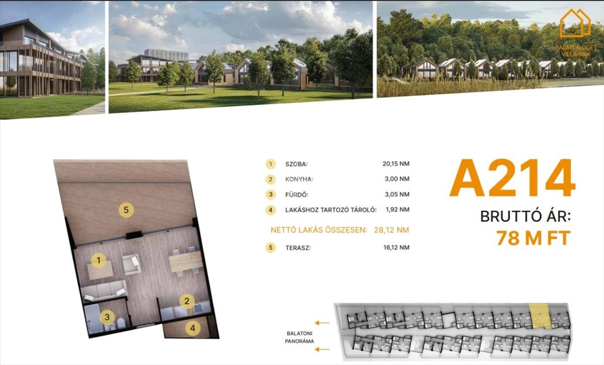 Modern letisztult építészet, tömegformálás, Balatonra tájolt panorámás teraszok.