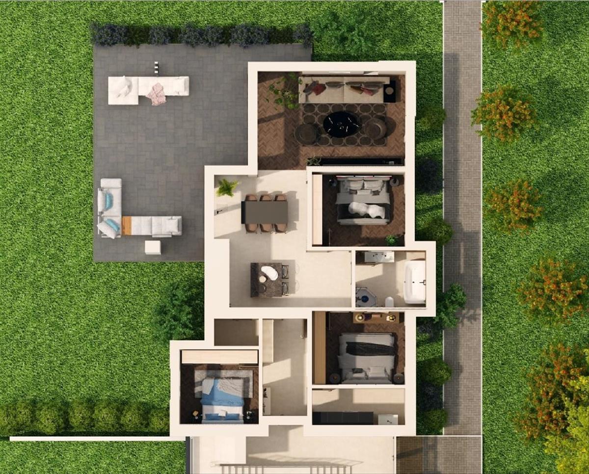Eladásra kínálunk egy új építésű 4 lakásos társasházban 114 nm -es, amerikai-konyhás nappali + 3 hálószobás duplakomfortos földszinti kertkapcsolatos és első emeleti lakásokat, nagy méretű terasszal!  a társasház a mai modern és korszerű igényeknek megfelelően épül, igényes burkolatokkal, nyílászárókkal, szaniterekkel referenciával rendelkező építtető cégtől.