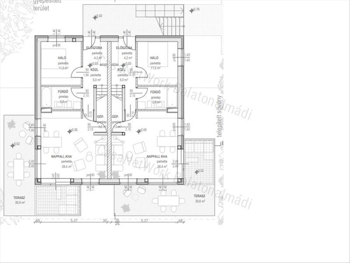 - a lakások mindegyike terasszal és cc. 200 m2-es kerttel rendelkezik