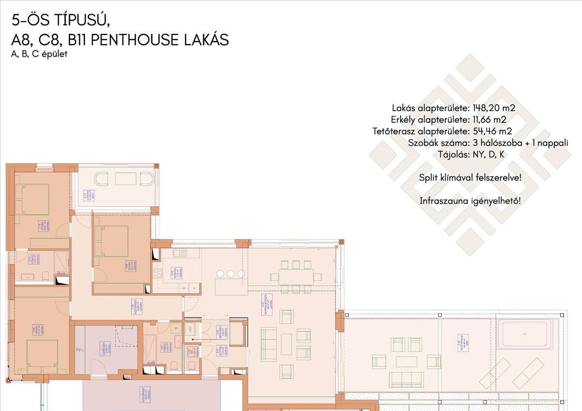 - Lakás alapterülete: 148, 20 m2