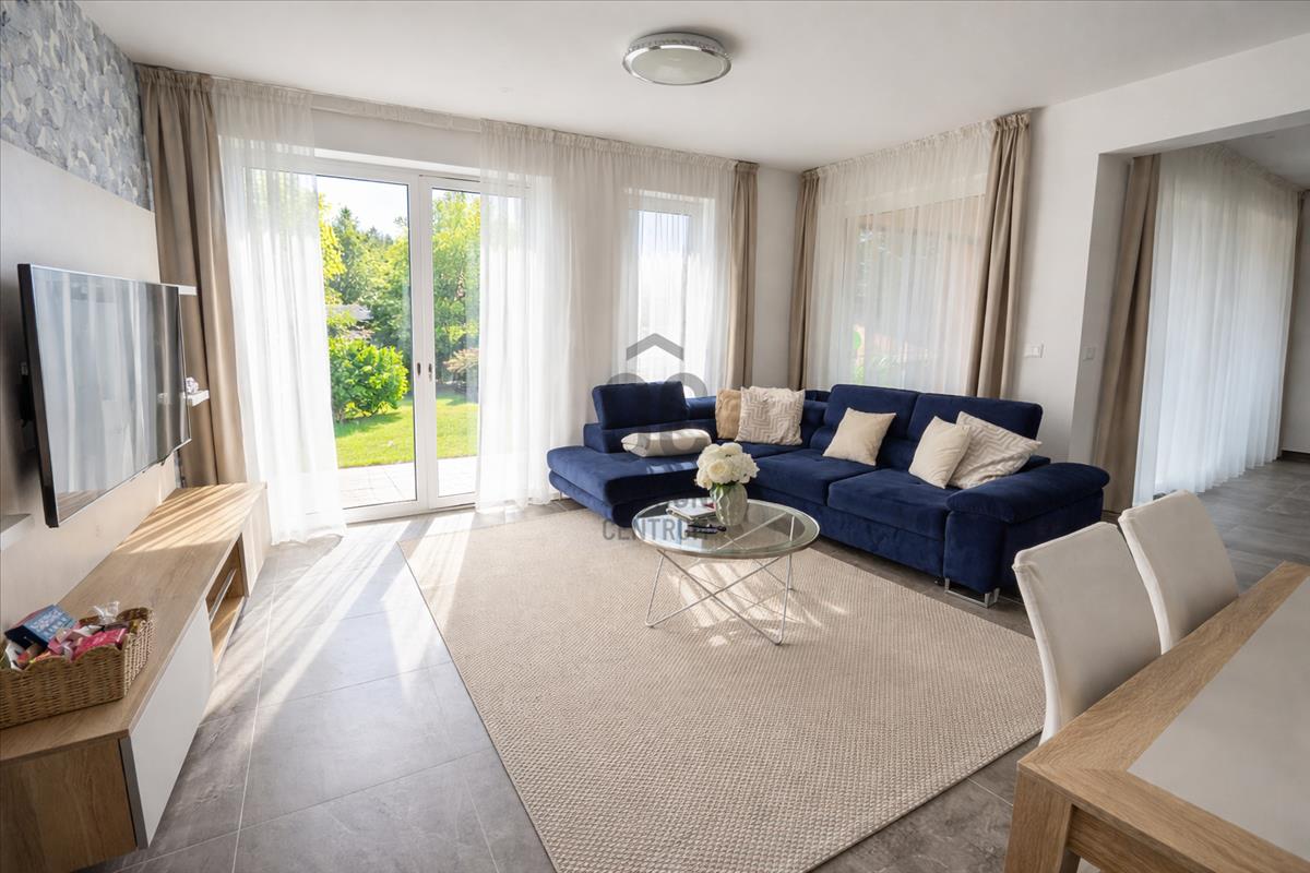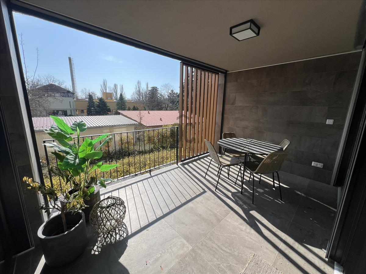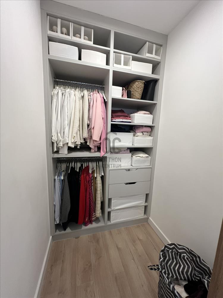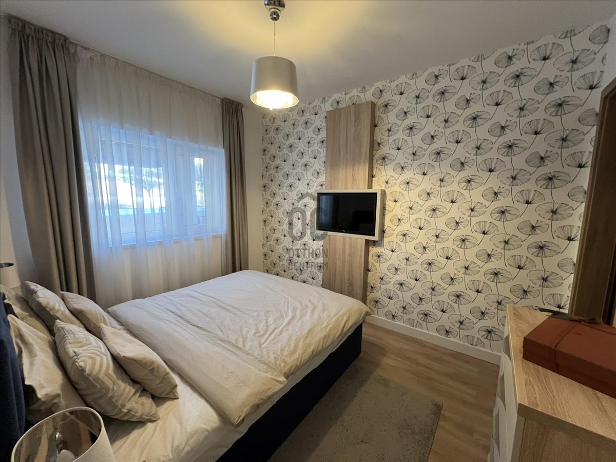 A lakás praktikus elrendezésű, beépített bútorokkal, valamint motoros redőnyökkel felszerelt. a nappaliból egy 15 m²-es terasz nyílik, ahonnan kellemes panoráma élvezhető.