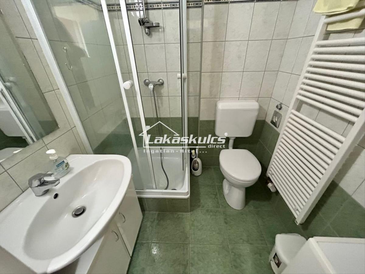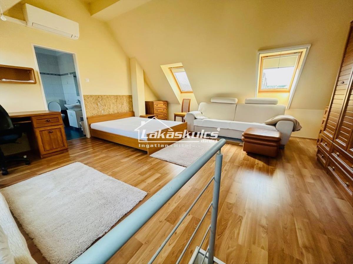 Alsó szinten: előtér, nappali, konyha, zuhanyzós fürdőszoba, erkély található