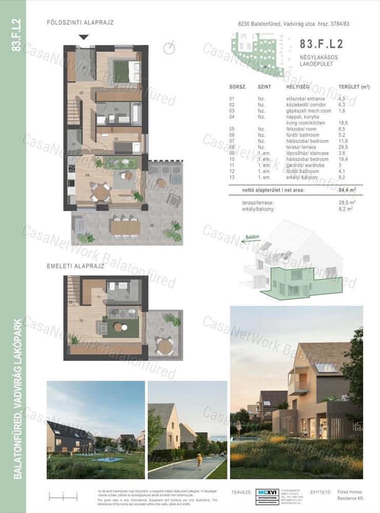 - a lakások a város újonnan frekventált részén, egy közel 7000 m2-es területen 9 ház (36 lakás) épül, távol a nyüzsgés zajától