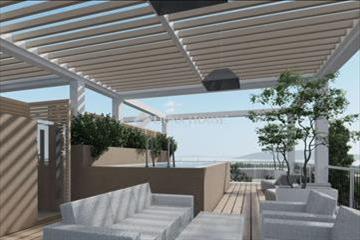 A penthouse-ok bioklimatikus pergolával felszerelt teraszai összenyithatók, illetve télikertként is funkcionálnak.